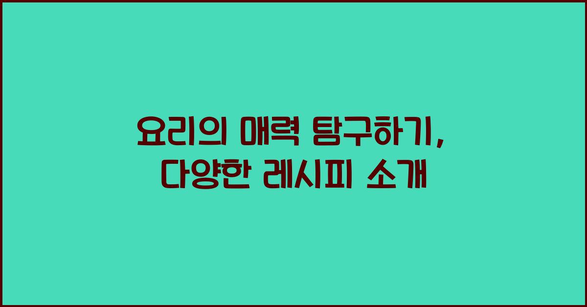 요리는 단순한 식사가 아닌, 감정과 추억을 담은 예술입니다. 이 글에서는 요리의 매력을 깊게 탐구하고, 다양한 레시피를 소개합니다. 요리의 매력, 마음을 담다 요리라는 것은 단순히 재료를 섞어 음식을 만드는 일이 아닙니다. 요리의 매력은 그 안에 담긴 다양한 감정과 문화, 그리고 사람들과의 소통에 있습니다. 누군가의 사랑을 담아 만든 요리는 그 자체로 소중한 기억이 되고, 단순한 식사 시간이 … 더 읽기