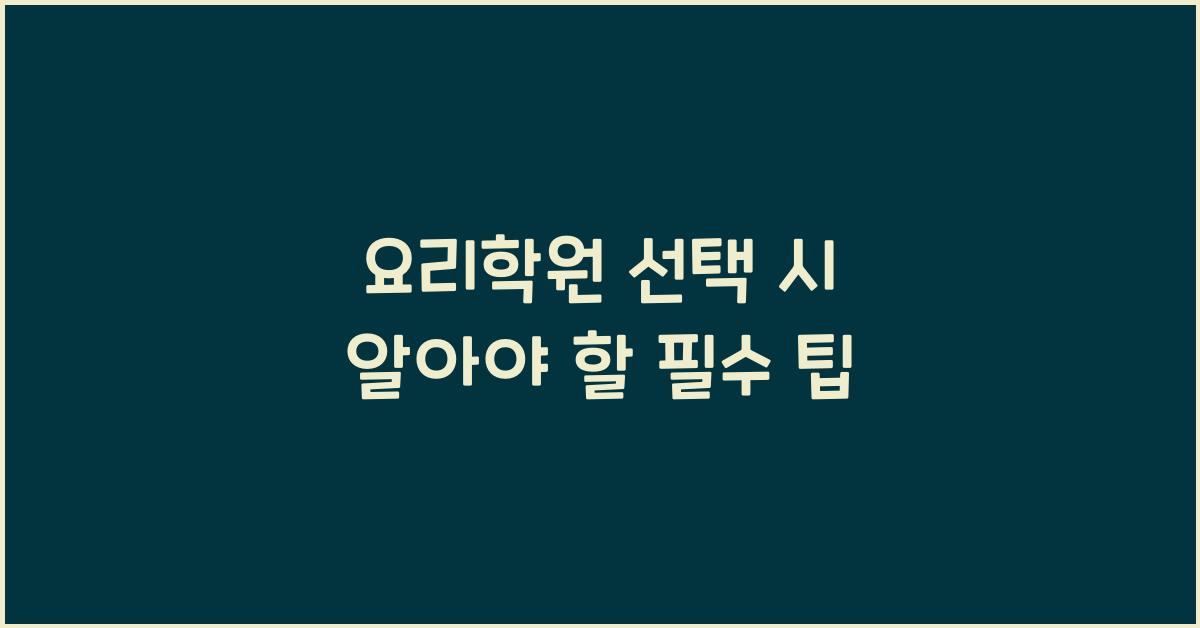 요리학원 선택 시 알아야 할 필수 팁